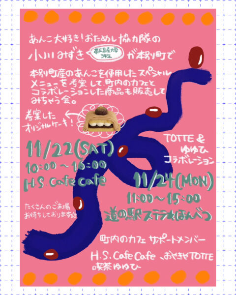 そこで、今回は本別町サポートメンバー(『H.S.CafeCafe』、『おやきやTOTTE』、『喫茶ゆゆひ』)のみなさんのご協力のもと、限定コラボレーションメニューを販売することが決定しました!!