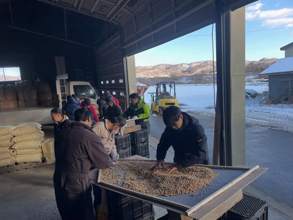 豆まかナイトブログ 豆まかナイト大豆選別作業✨ 2025/12/20 12月6日、来年のほんべつ豆まかナイトで使う大豆の選別作業を行いました! 食育で子どもたちが収穫してくれた大豆や、町のみなさんから寄付いただいた大豆を中心に、一粒ずつ丁寧に磨きながら仕上げていきました。 廃棄も多かった今年ですが、寄付や農協のご協力もあり、 なんと 昨年度を超える約3トン!の大豆 を確保することができました! 豆まかナイト当日、みなさんに“安心して全力で豆をまける”ように、 裏側ではこんなふうに心を込めて準備を進めています😊 引き続き、イベントをお楽しみに!✨