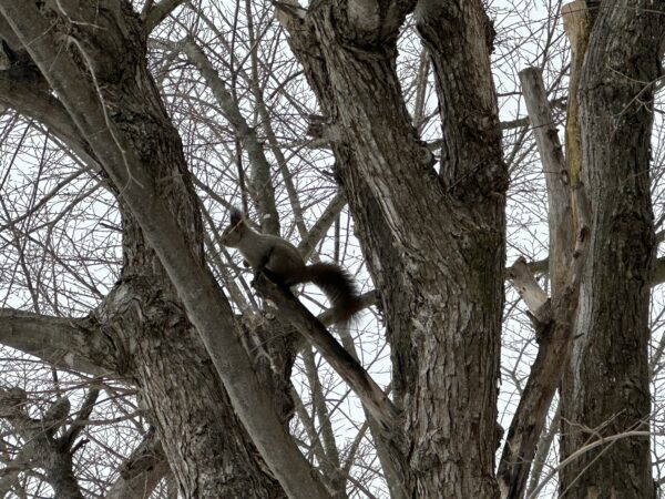 校内で撮影した雪の中を元気に走るリスの姿。厳しい冬の寒さにも負けず、