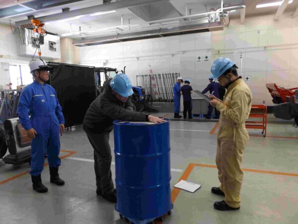 農業大学校では、1月14日から1月29日まで、3週間にわたり、「玉掛け技能講習」を実施しています。1月19日からは本校の畑作園芸経営学科1年生が受講し、ワイヤーの選定、道具を使わない質量目測や合図の方法、基本的な荷かけ、荷はずしの玉掛けの方法について知識を身につけ、安全に作業が行えるよう学んでいます。