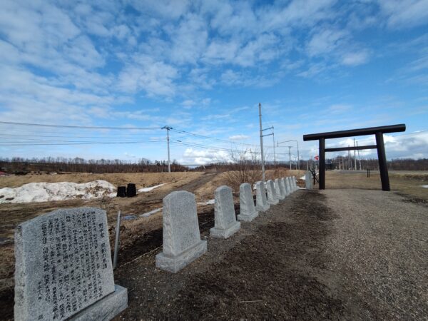 チエトイ神社には、当時の歴史を忘れることがないように入植者の家系の来歴が示された石碑や、開拓功労者の石碑がありました。